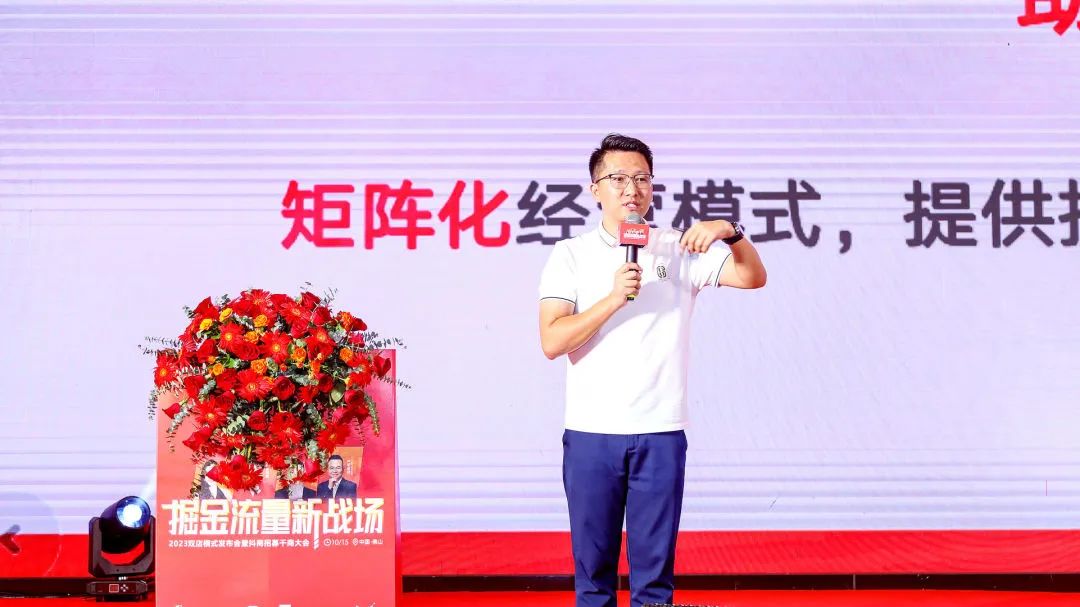 9月15日下午,「掘金流量新战场」2023双店模式发布会暨抖商招募千商大会在佛山希尔顿酒店盛大举行。集团总经理罗昶、集团总经理梁浩堂、集团营销总经理冼建堂、集团销售督导经理李朝霞,集团市场中心总经理冼桐华、集团市场中心经理颜伟生、品牌销售总经理陈东荣、品牌销售副总经理蔡泽雄等高层领导与来自全国各地嘉宾们齐聚一堂,共同分享投资财富盛宴。