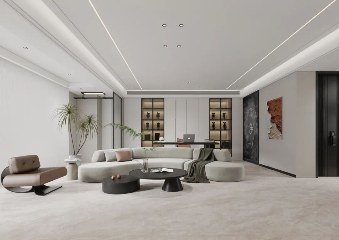 线条在空间上肆意游走,塑造了写意山水的自在感,恢弘大气、层次丰富,赋予延伸空间的视觉效果,就将优雅与时尚的气质展现得淋漓尽致。