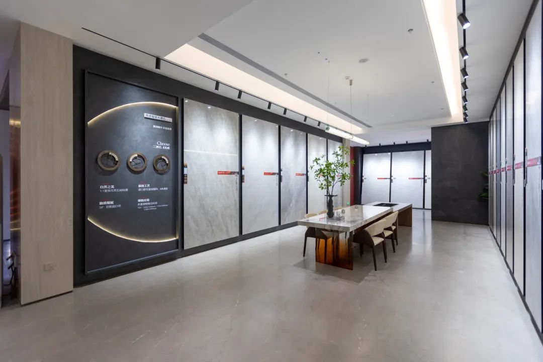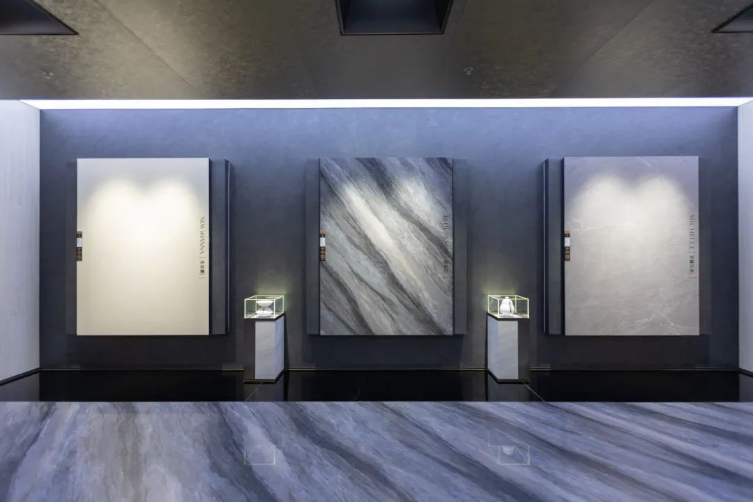 质感艺术馆打造全方位的选材中心,展示质感复刻大理石等高值产品,以更加时尚的侘寂风美学体验为导向,紧贴当前潮流发展。